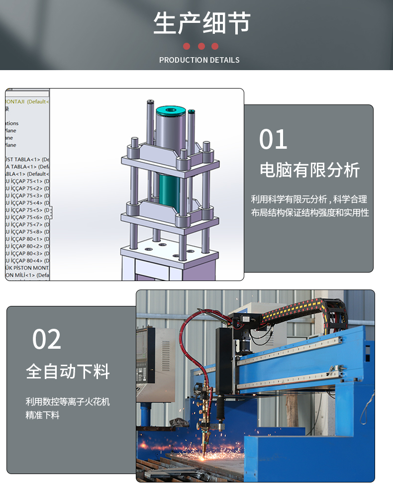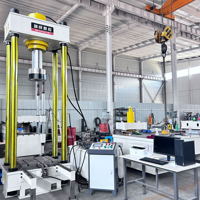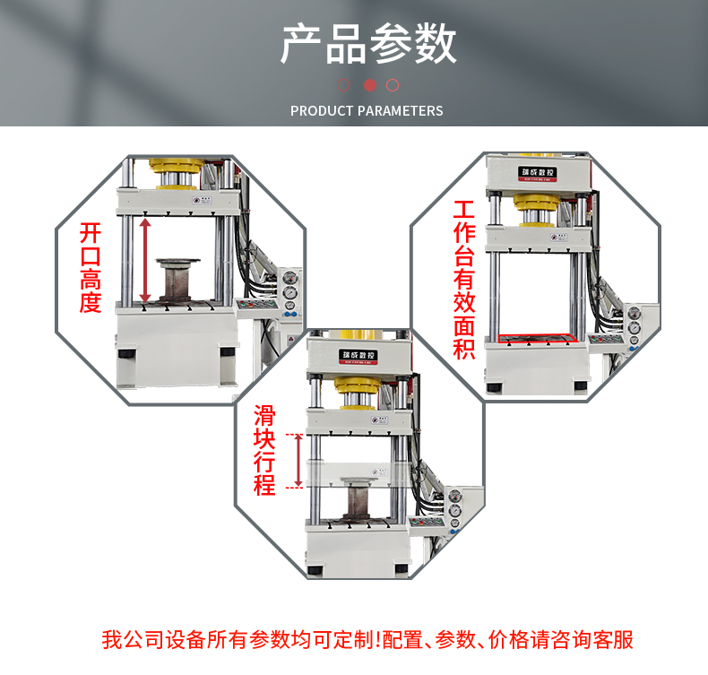 兩梁四柱是液壓機的一種常見結構形式,其中 “兩梁” 通常是指兩個橫梁,“四柱” 是指四個立柱。這種結構可以為液壓機提供穩定的支撐和導向,保證在工作過程中活動部件(如滑塊等)能夠平穩、精確地運動,以滿足對工件進行加工的精度要求。移動工作臺則是該液壓機的一個特點,它能夠在一定范圍內移動。這種設計具有以下一些優點:方便上下料:操作人員可以將工作臺移動到合適的位置進行工件的安裝和拆卸,提高工作效率,尤其對