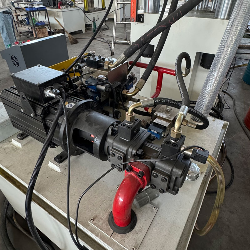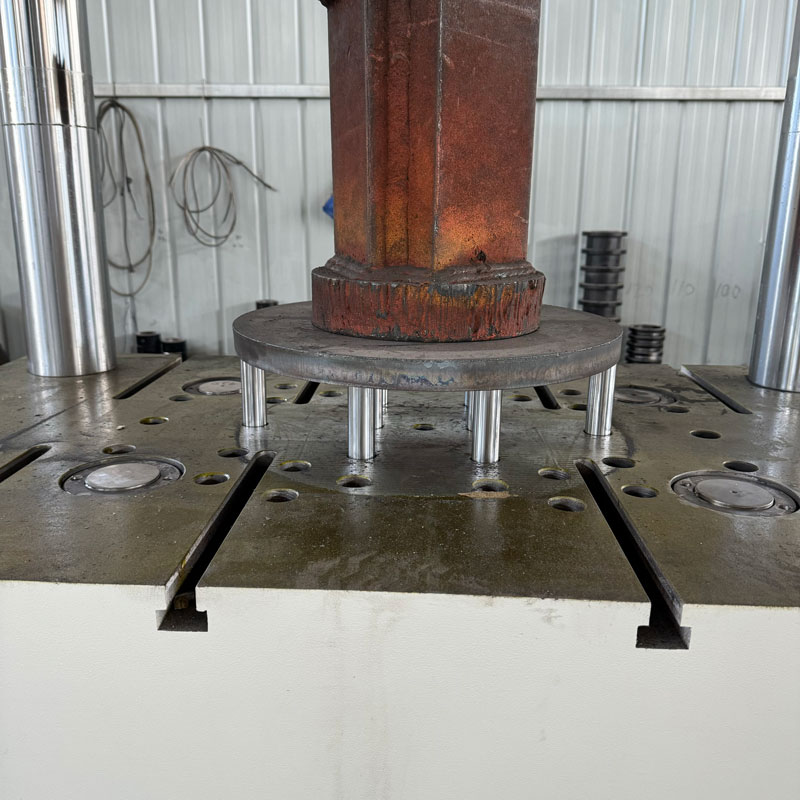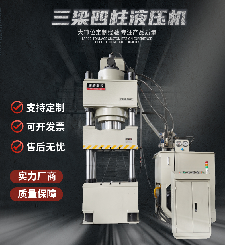 315 噸多桿頂出液壓機是一種較為常見的大型液壓設備,以下為你詳細介紹:結構組成:機身:通常為四柱三梁式結構,由上橫梁、下橫梁、四根立柱通過螺母緊固連接,形成一個封閉的剛性框架,以承受工作時的作用力。例如,在金屬板材的沖壓過程中,機身能穩定地支撐整個工作過程中的沖壓力。多桿頂出裝置:這是該液壓機的關鍵部分,一般由多個頂出桿組成,分布在工作臺或模具的不同位置,可實現多點同步或不同步的頂出動作,滿足復